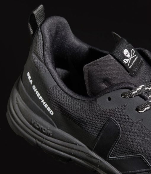Para Esta Colaboración, El Estudio Veja Trabajó En Una Versión Revisada Del Dekkan: Full-black, Inspirado En Los Piratas Pastores Del Mar. Este Modelo Es De Alveomesh, Un Tejido Técnico Fabricado Exclusivamente Con Poliéster Reciclado. El Dekkan Es Un Modelo Para Exteriores Que Combina La Tecnología De Veja Y El Saber Hacer De Vibram, Conocida Por Sus Suelas De Alto Nivel.