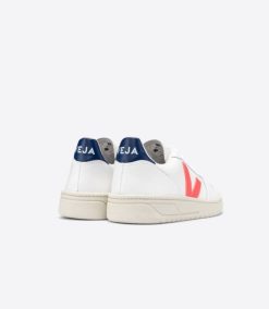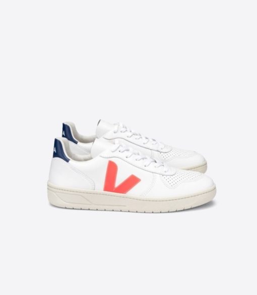 Marca Veja V-10 Cuero Blanco Naranja Fluo Cobalto