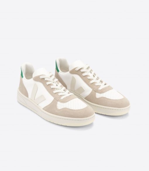 Veja Brand V-10 Cuero Sin Cromo Blanco Sahara Esmeralda